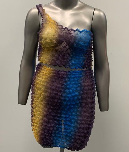 Colorful Textured Mini Skirt and Crop Top Set